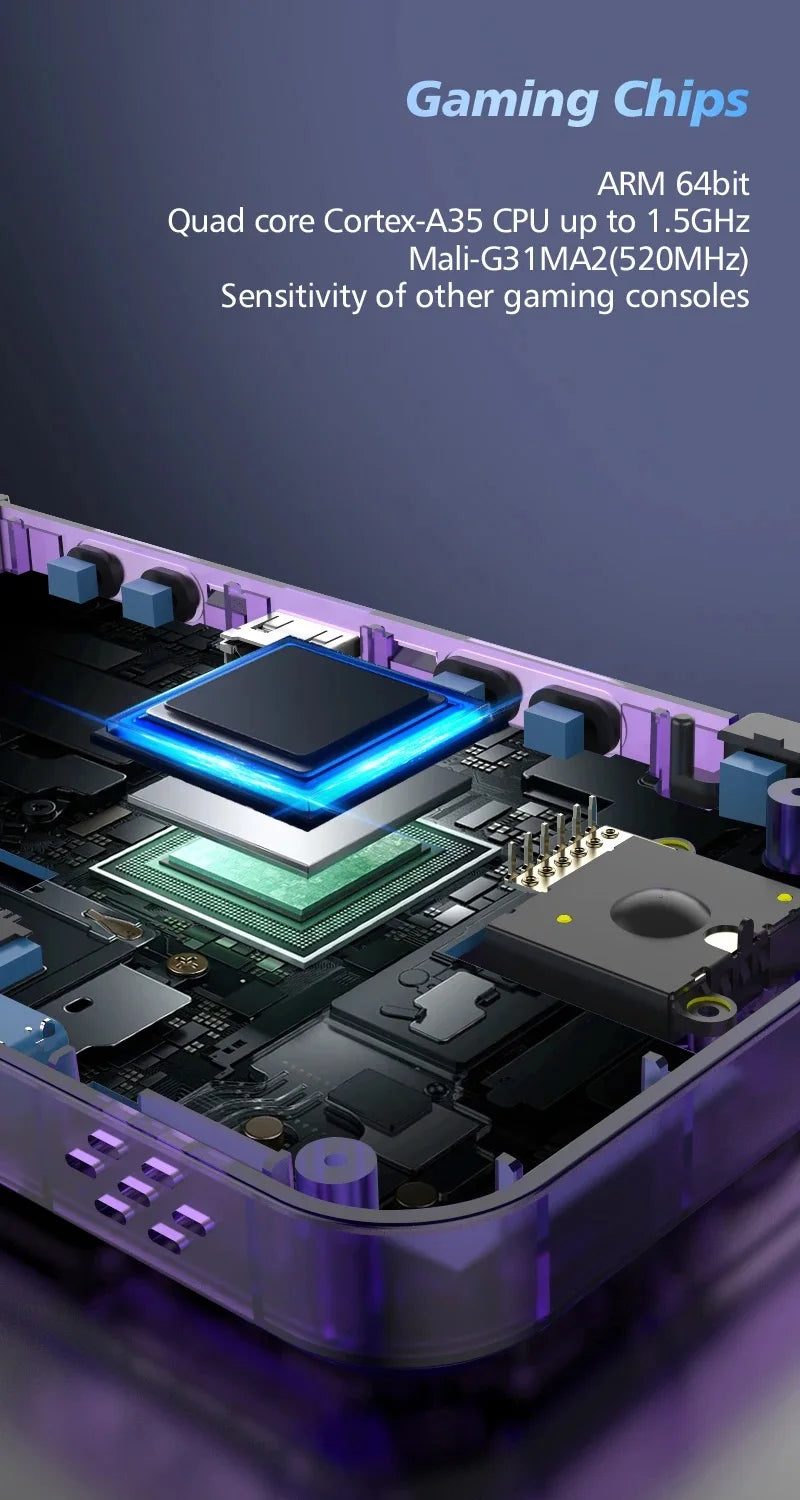 Powered by the advanced RK3566 64-bit quad-core processor and a Mali-G52 GPU, this handheld console delivers lightning-fast performance and smooth 60Hz gameplay. With a 1.8GHz A53 CPU at its core, it offers the high responsiveness and precision sensitivity you'd expect from premium gaming systems. It's perfect for seamless retro and 3D gaming experiences.