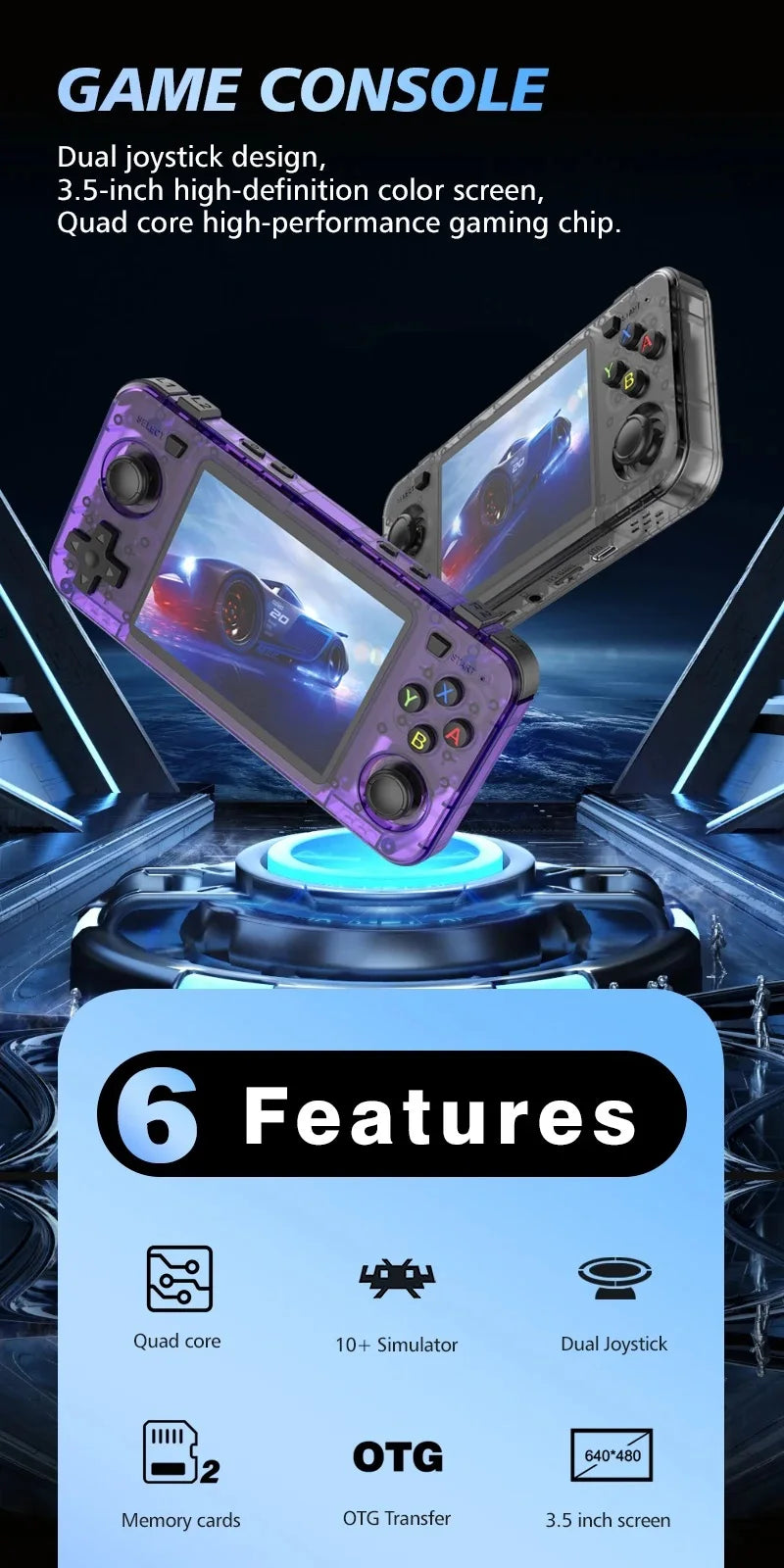 Level up your gaming experience with R36H Retro Game Console high-performance handheld game console, featuring a 3.5-inch HD color screen and a powerful quad-core chip for smooth, responsive gameplay. Equipped with dual joysticks, support for over 10 emulators, OTG transfer, and memory card compatibility, this compact device delivers console-quality entertainment wherever you go.